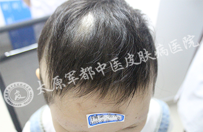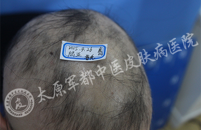 “当时来的时候,头发稀稀的,她是戴假发来的,是那种波波头。”阿美就是一个典型的普秃患者,本该是一个美女。2015年4月26日,她来到太原肤康中医皮肤病医院就诊,上面的两张初诊实拍照片就是她病情的真实记录。