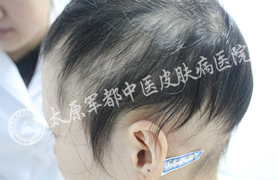 “刚来的时候头上很油的,发亮,检查时毛囊口亮亮的,全是油脂,堵住了,连小头发都没有。”接诊阿美的正是太原肤康中医皮肤病医院李主任,她介绍说,“她头发基本上脱的没有了,稀稀拉拉的,眉毛、睫毛也基本上脱的没有了。”