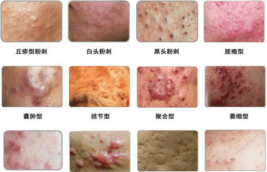 除了上述常见的三大类青春痘外,还有结节性青春痘、萎缩性青春痘、囊肿性青春痘、聚合性青春痘等多种类型。