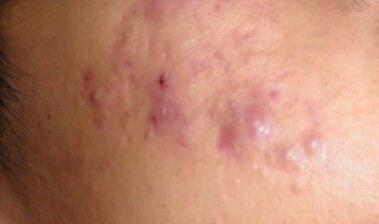 脓疮性青春痘:皮肤上,以脓疮表现为主,绿豆大小,顶部形成白头脓疱,底部颜色为浅红或深红,触碰时感觉疼痛,脓液较为黏稠,治疗不当,常遗留或浅或深的瘢痕。