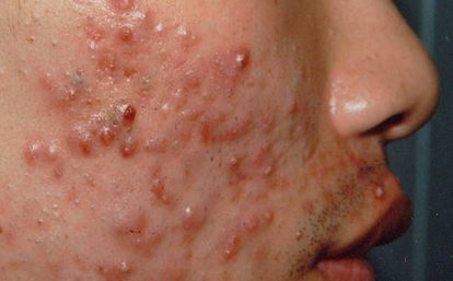 肤康医生提示:另外,还有几种重症型青春痘如聚合性青春痘、坏死性青春痘及暴发性青春痘等,皮损主要是大的结节、囊肿、脓肿和溃疡,并形成疤痕,对身体影响更大,有的尚伴有全身症状,治疗起来亦比较困难。还有一种叫恶病质性青春痘的超重型青春痘,虽极少见,但却相当严重。这类患者的头面部全是大片的结节、囊肿、脓肿和硬瘢,多处流脓渗血,患者苦不堪言。