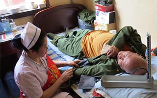 太原肤康中医皮肤病医院志愿者服务队是由医院医护人员自发组建的致的公益组织。本着“奉献、友爱、互助、进步”的志愿者精神,医护志愿者在为老兵们送上慰问品的同时为他们仔细进行健康检查和生活护理,用微笑和爱心让老兵们感受到浓浓的亲情和社会大家庭的温暖。