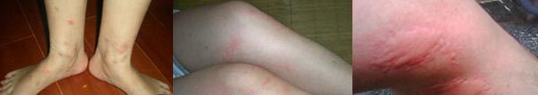 4、人工性荨麻疹:用指甲或钝器划皮肤时,即发生与划痕相一致的条状隆起,不久消退,伴有瘙痒。