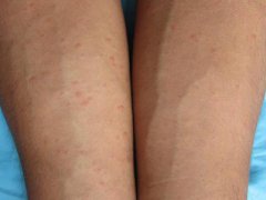 5、丘疹性荨麻疹:常见的一种鲜红色性丘疹性皮肤病。春、夏、秋季发生较多。大多数的发病与某些节足动物如蚊、螨蠓、臭虫等的叮咬有关,致病过程中影响肥大细胞释放组胺,引起血管渗透性增加,结果形成本病临床损害的红斑、水肿及瘙痒等特征。基本损害为1-2厘米大小的纺锤形鲜红色风团样丘疹,中心常有小水疱,有时为疱壁紧张性大疱,大疱液清澄,周围无红晕,皮损常成批发生,数目不定,新旧皮疹常同时存在。在红斑和水肿消退后留下质坚丘疹。自觉瘙痒剧烈。