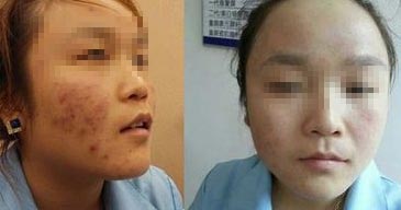 到了第二阶段,用美国595染料激光,去红痘印,半个月到一个月做一次。很快正常肤色出来了,临床得到了满意效果。